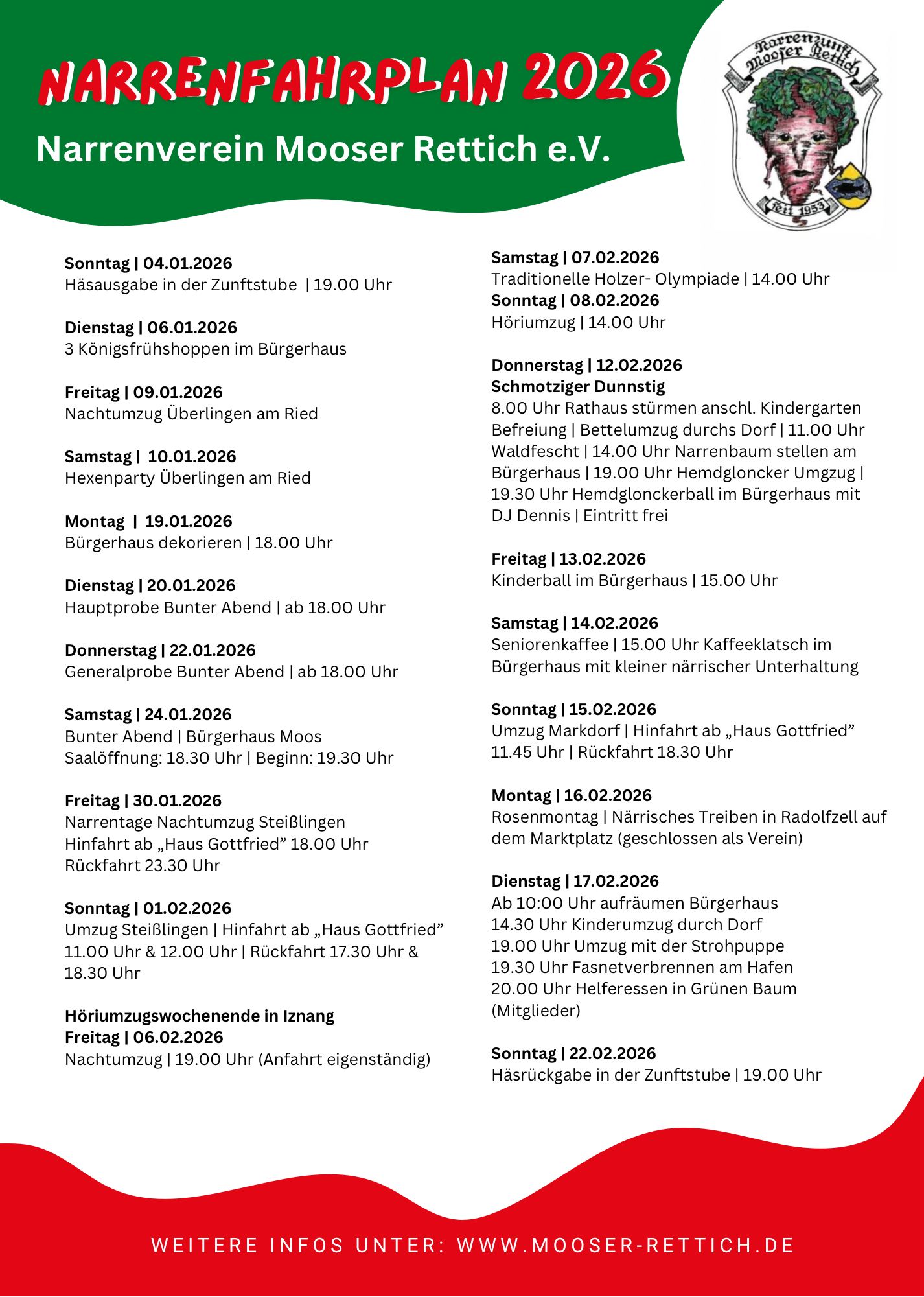 Herzlich willkommen auf der Homepage der Narrenzunft Mooser Rettich e.V